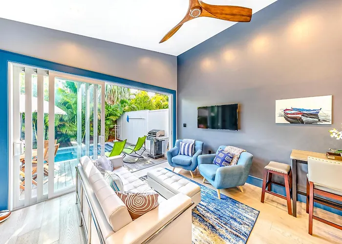 La Villa Island Retreat Cayo Hueso está situada a tan solo 5 minutos a pie del Museo de la Estación de Bomberos de Key West y ofrece un patio con vistas a la piscina. Situada a unos 2 km de la Casa Blanca de Harry S. Truman, esta casa de vacaciones cuenta con zona de pícnic y zona de juegos para mayor disfrute.